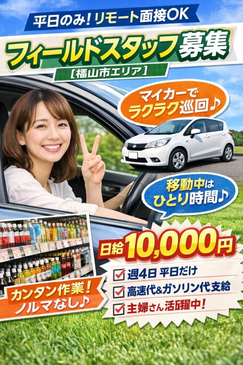 製品(ドリンクなど)の納品先店舗をマイカーで移動巡回し、